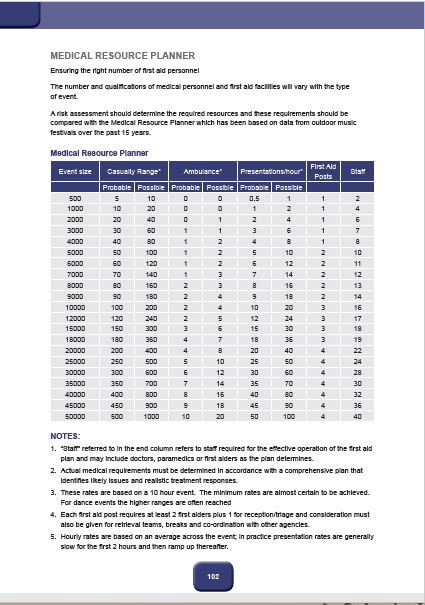 | Technical Team (CCTV, radio, comms, etc.) | 30 |