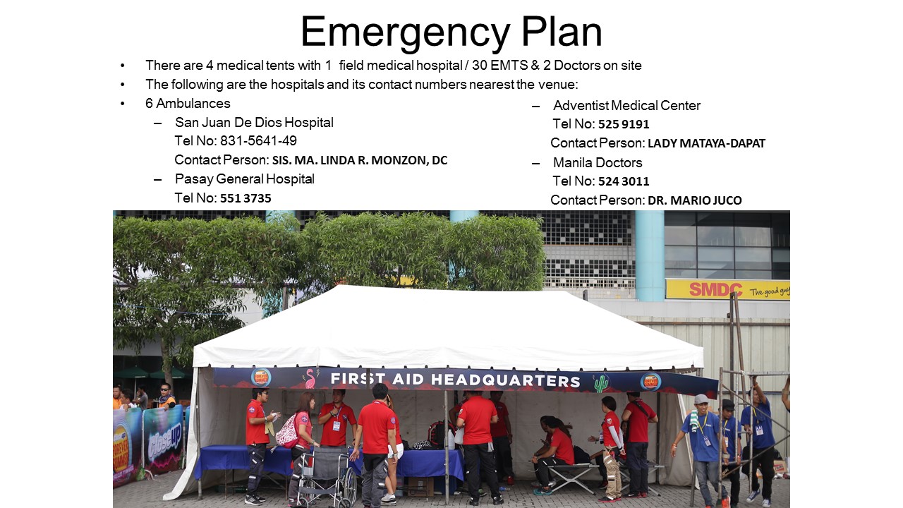 Several days before the event, the organizers coordinated with 4 hospitals that were nearest to the venue.